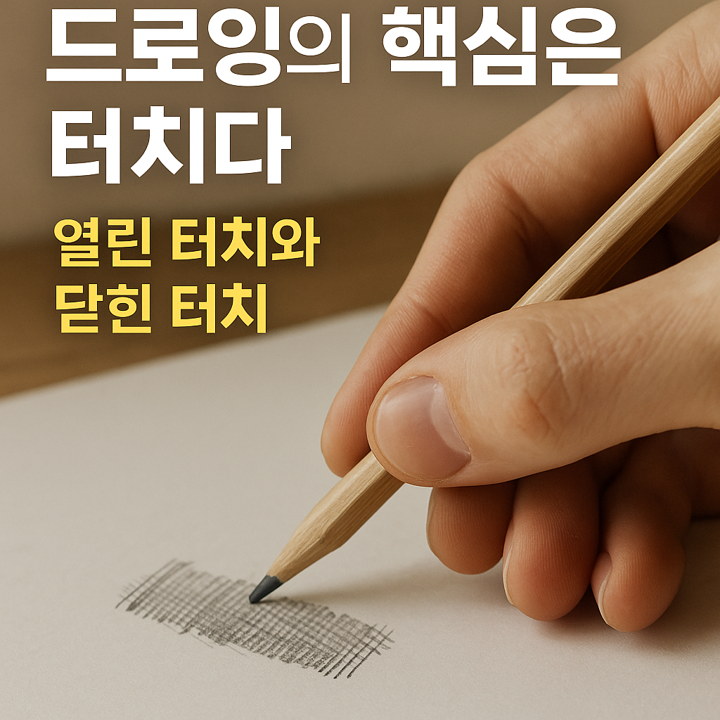 연필로 선을 긋는 방식 하나만 바꿔도 그림의 느낌이 완전히 달라집니다. ‘열린 터치’와 ‘닫힌 터치’는 드로잉의 분위기와 깊이를 결정하는 핵심 요소입니다. 오늘은 선의 감각을 완성하는 두 가지 터치 기법을 중심으로 드로잉의 기초부터 표현력 향상까지 알아보겠습니다. → 미술전공자도 인정한 연필깎는 법 바로가기 ← "> → 미술전공자도 인정한 연필깎는 법 바로가기 ← 목차열린 터치란 무엇인가?닫힌 터치란 무엇인가?열린 터치와 닫힌 터치의 차이점선 연습으로 터치 감각 익히기드로잉 실전에서 터치 활용하기선이 부드러워지는 손의 감각 훈련법드로잉의 핵심은 터치다마무리: 터치는 그림의 리듬이다 1. 열린 터치란 무엇인가?열린 터치는 공기감과 여백이 살아 있는 선을 말합니다. 연필 끝이 종이에 닿는..